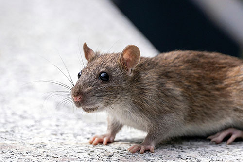 Rats are larger rodents with long tails and blunt snouts. Signs include droppings, gnaw marks, grease trails, or noises in walls.